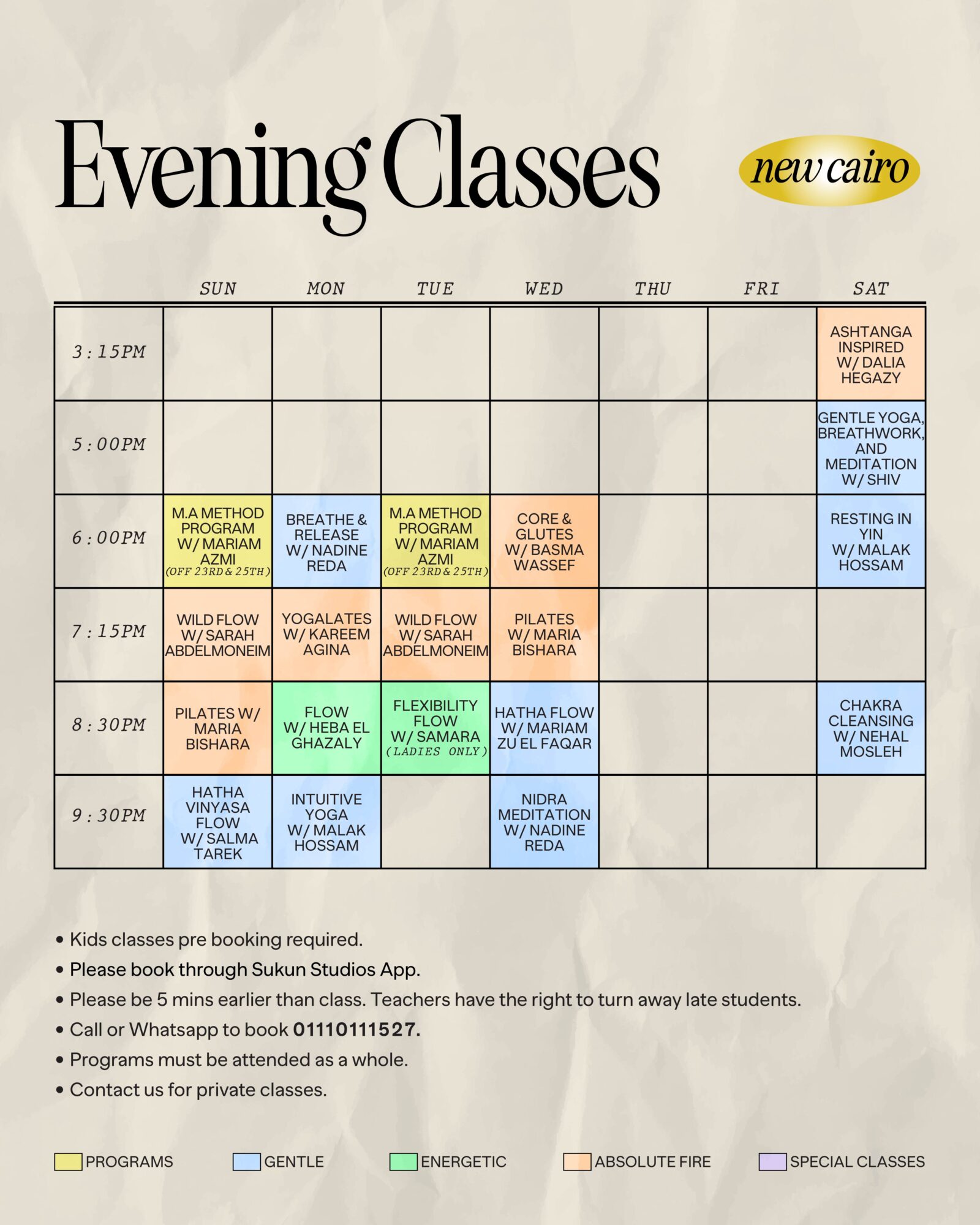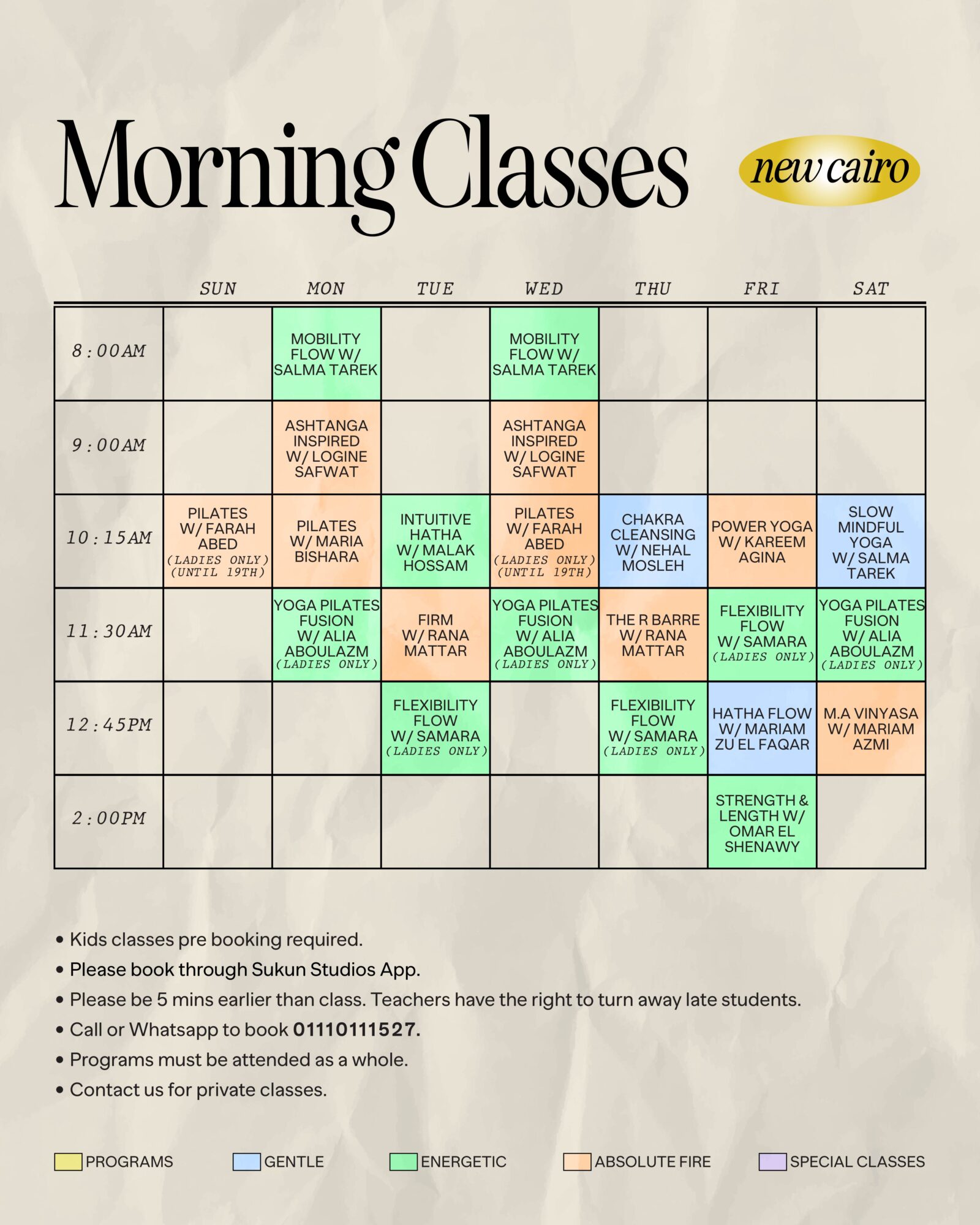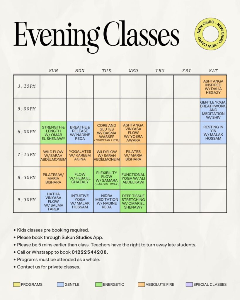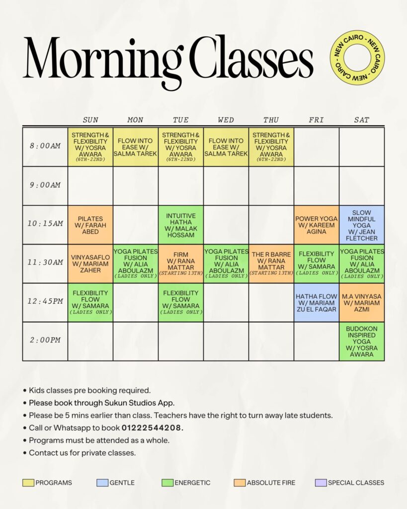 Check our daily schedule and book your class/workshop from here